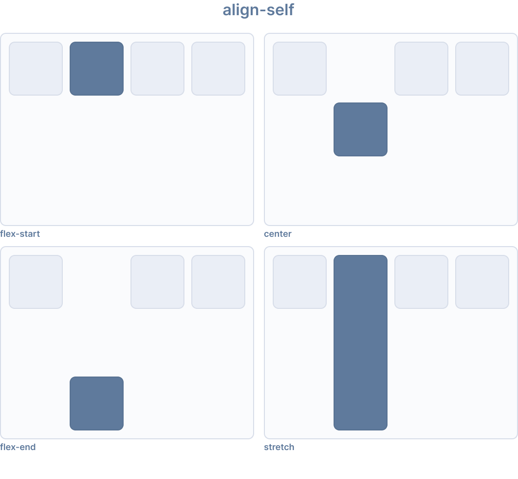 Flexbox プロパティは、すべての flex アイテムのレイアウトを制御するコンテナプロパティと、個々の flex アイテムを制御するアイテムプロパティの 2 つのカテゴリに分けられます。アイテムレベルの配置については、Flex Item Propertiesを参照してください。
